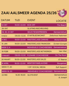 De agenda voor het nieuwe ZAAI traject is bekend! De overige tijden en de locaties worden nog bekend gemaakt.